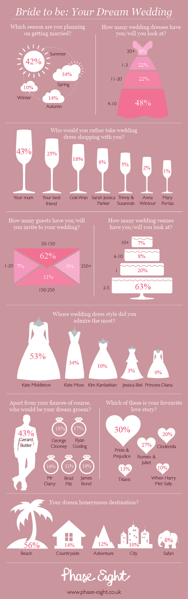 Monday, April 22nd, 2013Thanks to everyone who filled in the Phase Eight wedding guest questionnaire – just under 400 of you completed it and here we can share the results: